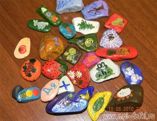 Подделки для ребенка из цветных камешков.