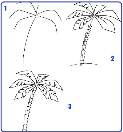 Дорогие друзья! Давайте научим наших деток рисовать, это не сложно вот образцы пальмы и дуба. Это увлекательное занятие очень понравится Вашим малышам.